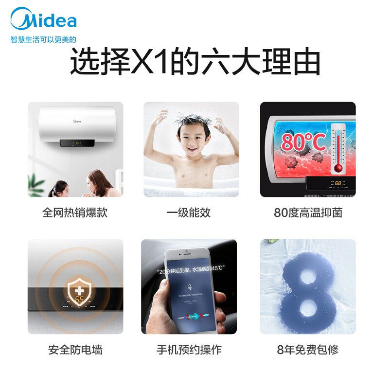 Midea F6021-X1 water heater intelligent electric household 60 liters water storage powder room instant heat energy saving 50L