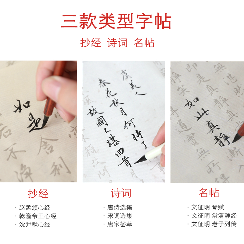 Long book Small Kai brush Copybook Adult calligraphy Introduction Copy Red rice paper Beginner Heart Sutra Copy Sutra Hand copy Buddhist Sutra Regular Script Calligraphy Copybook Soft pen practice set