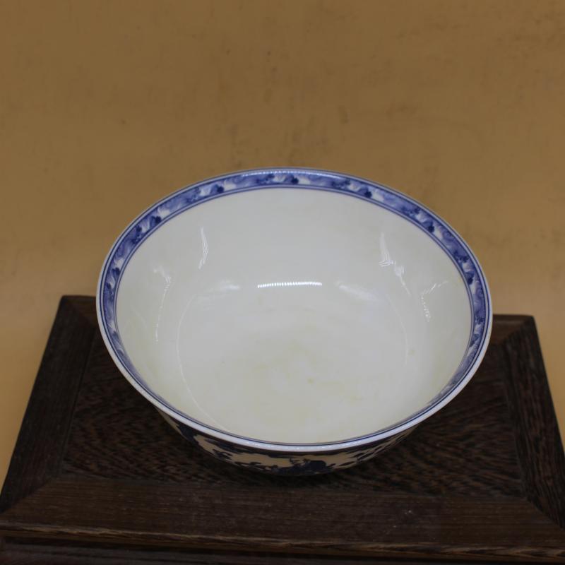 Qingqian Loni Year Green Flowers Characters Storytelling Ghost Valley Downhill Large Bowl Folk Collector Used Porcelain Antique Ancient Play