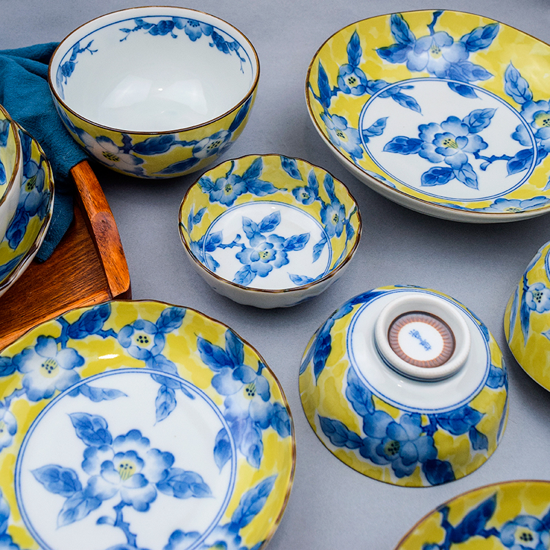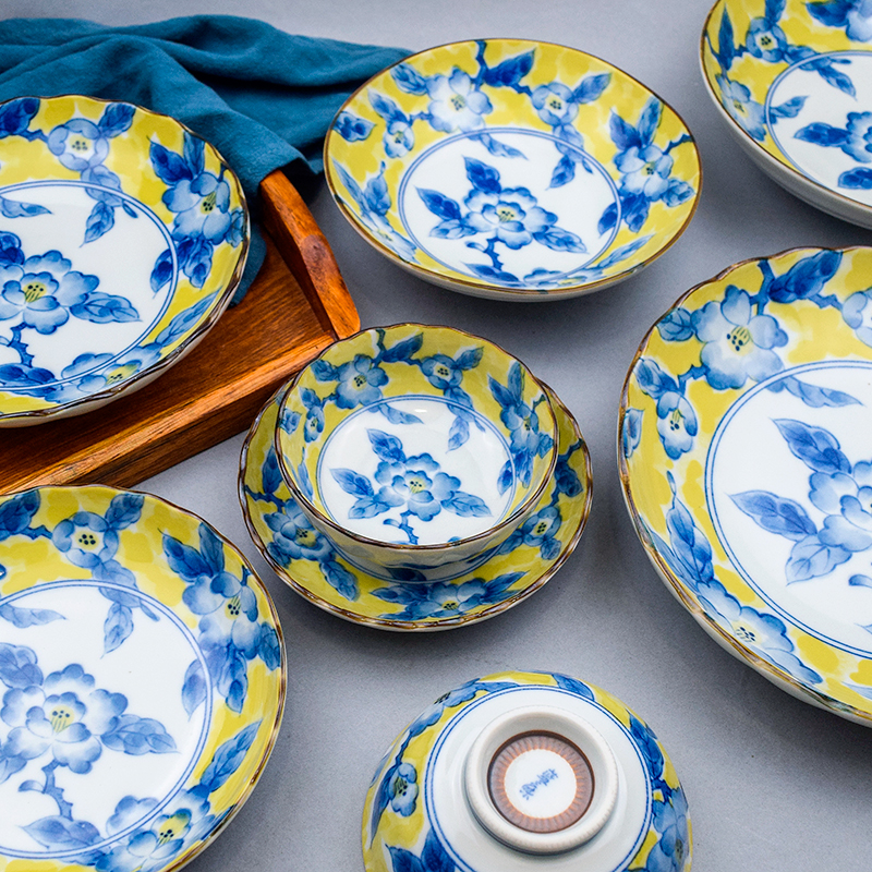 Yellow pattern 19 cm square yellow pattern 13 5cm flat plate yellow pattern 16 5cm shallow shallow bowl yellow pattern 13 5cm shallow bowl yellow pattern 13 7 tea scale bowl