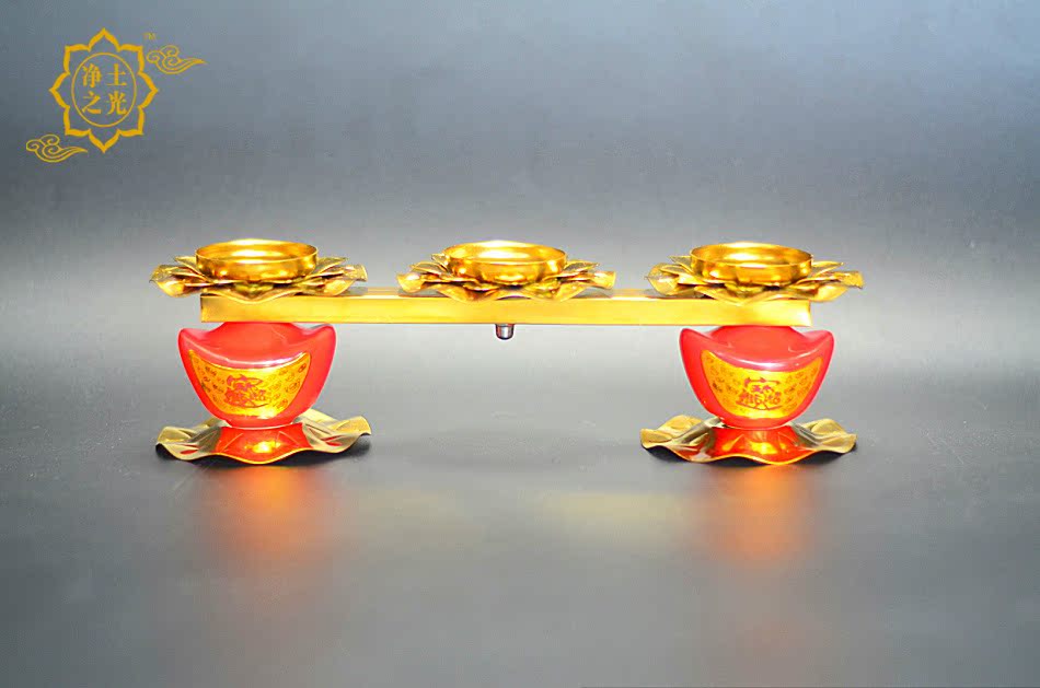 Butter lamp shelf lamp holder stainless steel three silver ingots to attract money into the treasure household Buddha hall for the ever-burning lamp temple to worship