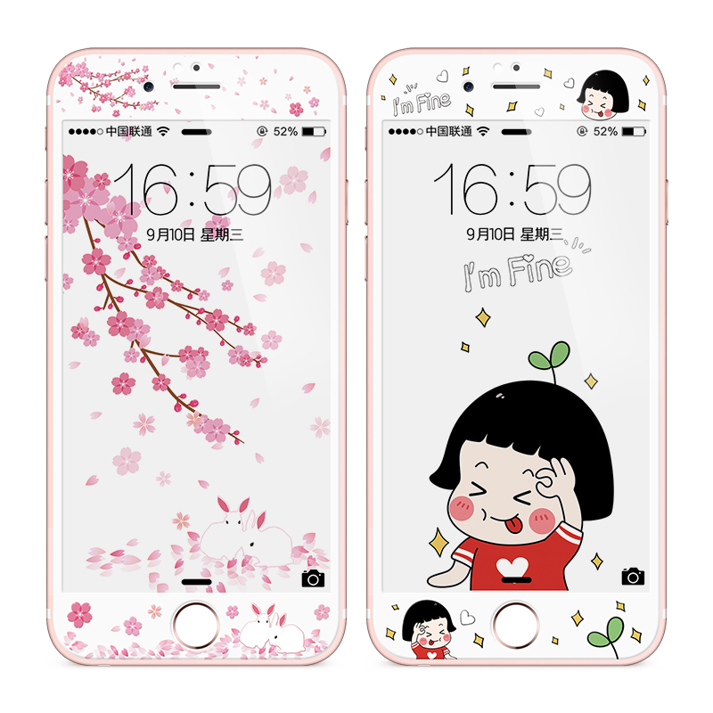 Play in Full Screen iphone7 Steel Chemical Film 4 7 Color Film Cartoon Apple 7plus Mobile Phone Protective Film Cute Anti-Bursting Film