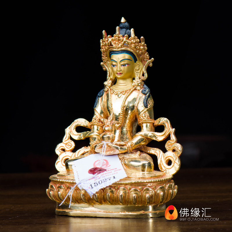 Tibetan Buddhism Tantric buddha statue ornaments Nepal handmade pure copper full gilt 5-inch longevity Buddha dedicated to Buddha statues