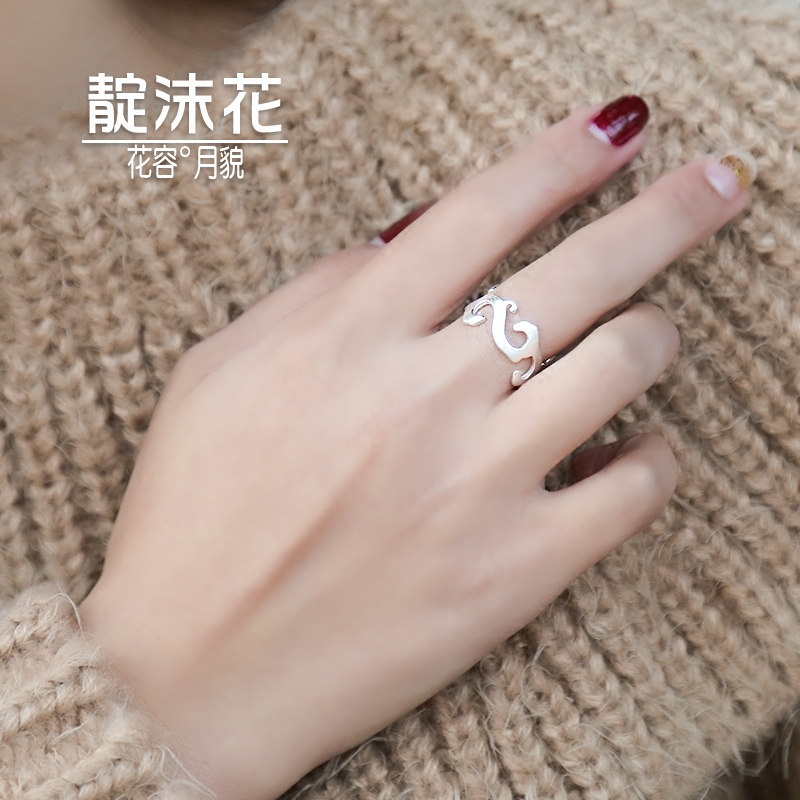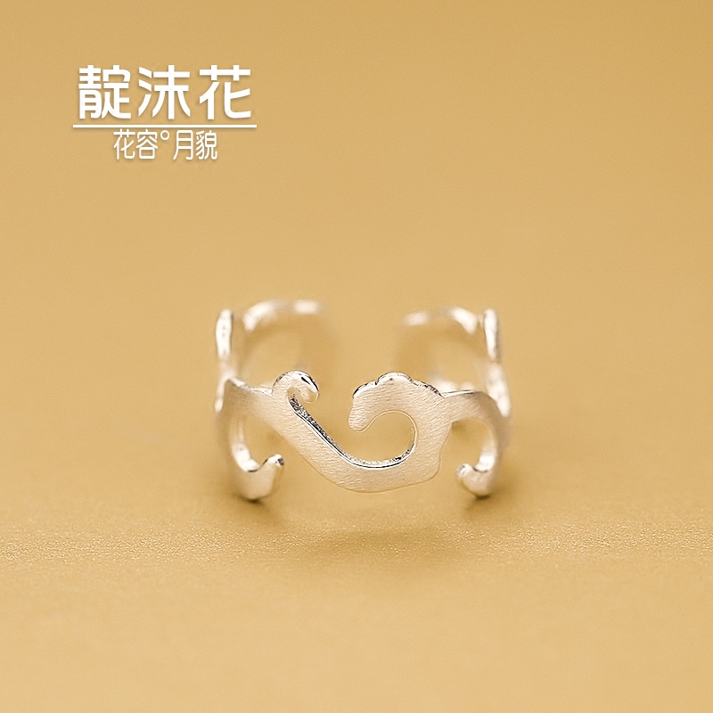 s925 pure silver cloud flower pattern ring art index finger ring hollow flower shape ring classical ring anti-allergy ornament