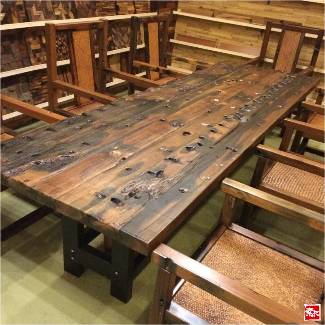 Old weathering board retro-old boat wooden mosaic TV background wall board solid wooden table staircase bar