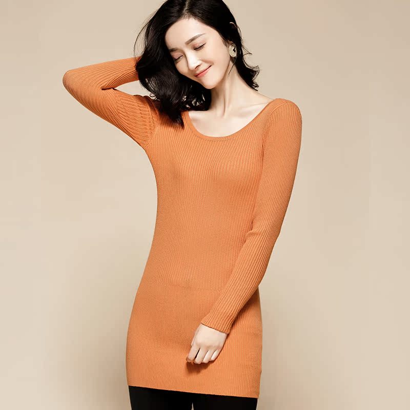 The bottom sweater for women's middle and long slim round neckline, the new fashion long sleeve sweater pullover for women's clothing, is designed to show slimming spring and autumn
