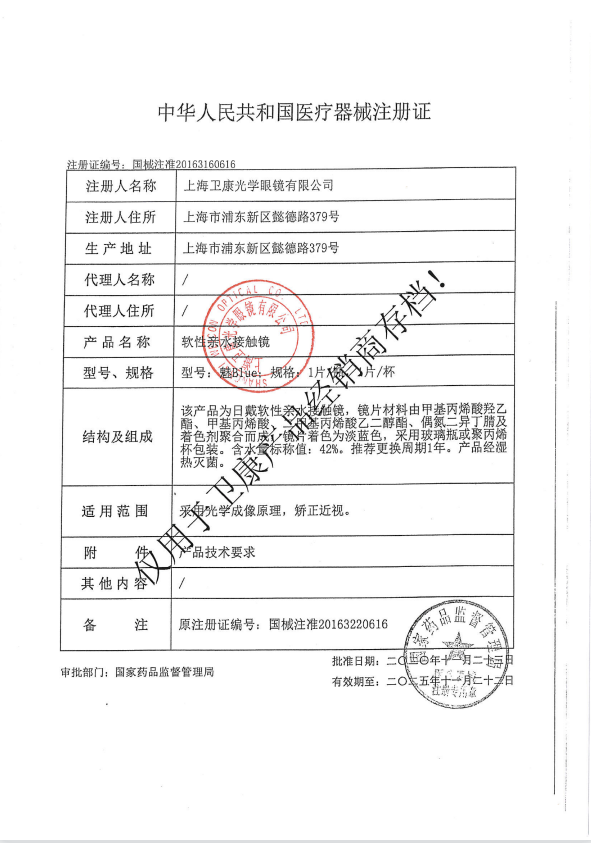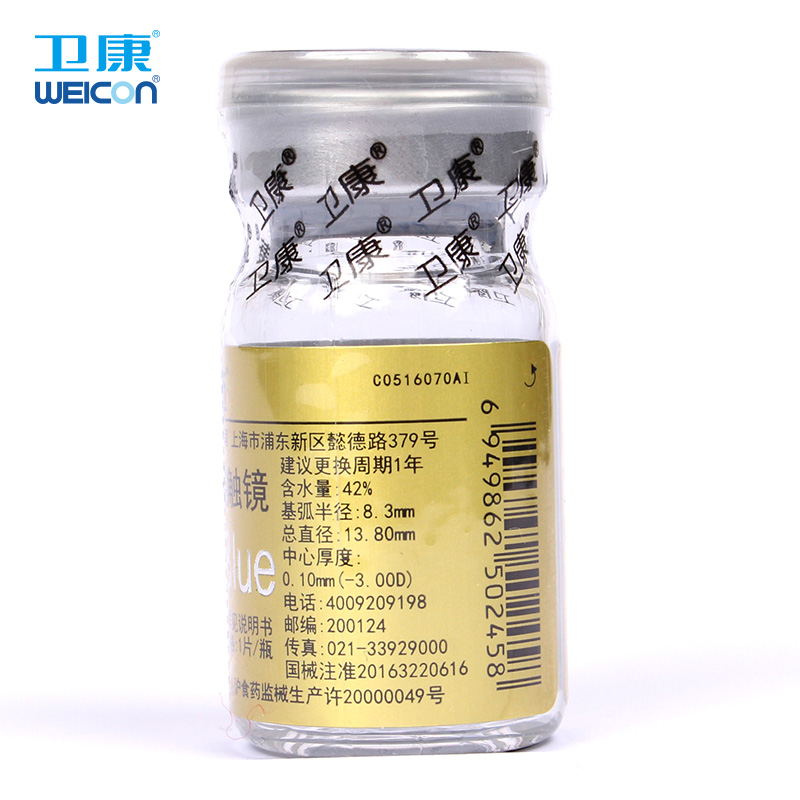 Wei Kang Invisible Glasses nian pao Cartridge 1 sheet charm blue gold oxygen-permeable water HD transparent high-degree