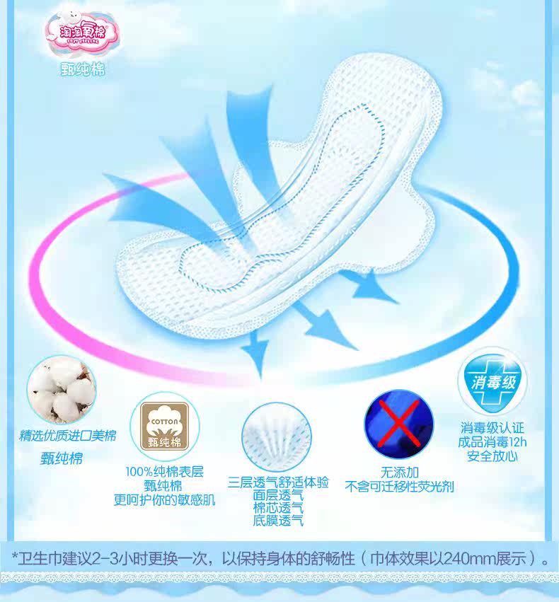 Naughty Oxygen Disinfection Grade Pure Cotton Sanitary Cotton 8 Pieces Daily 265mm 2 sheets Night with 355mm No-fragrance-type combined dress