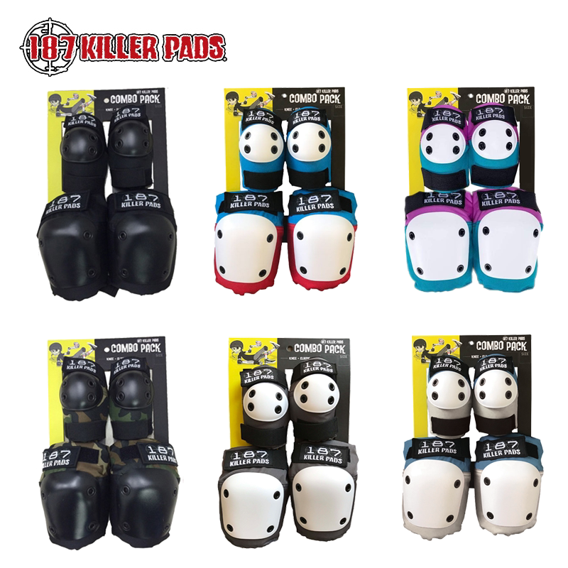 Black (knee pads, elbow pads) camouflage (knee pads, elbow pads) stone khaki (knee pads, elbow pads) gray and white (knee pads, elbow pads) blue and red (knee pads, elbow pads) blue and white (knee pads, elbow pads) comics (knee pads, elbow pads)