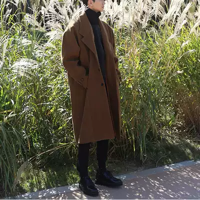 Winter thickened Korean coat men's medium and long version of woolen coat coat tide men loose woolen coat simple man