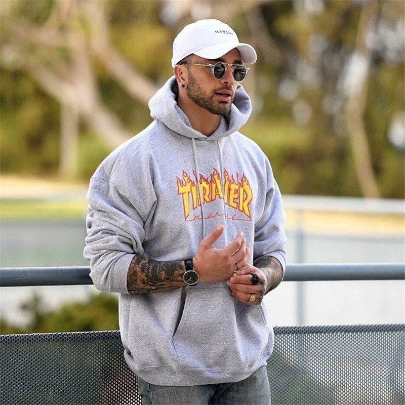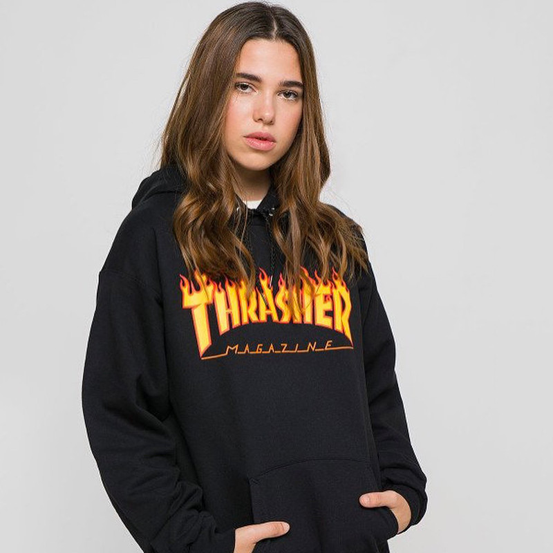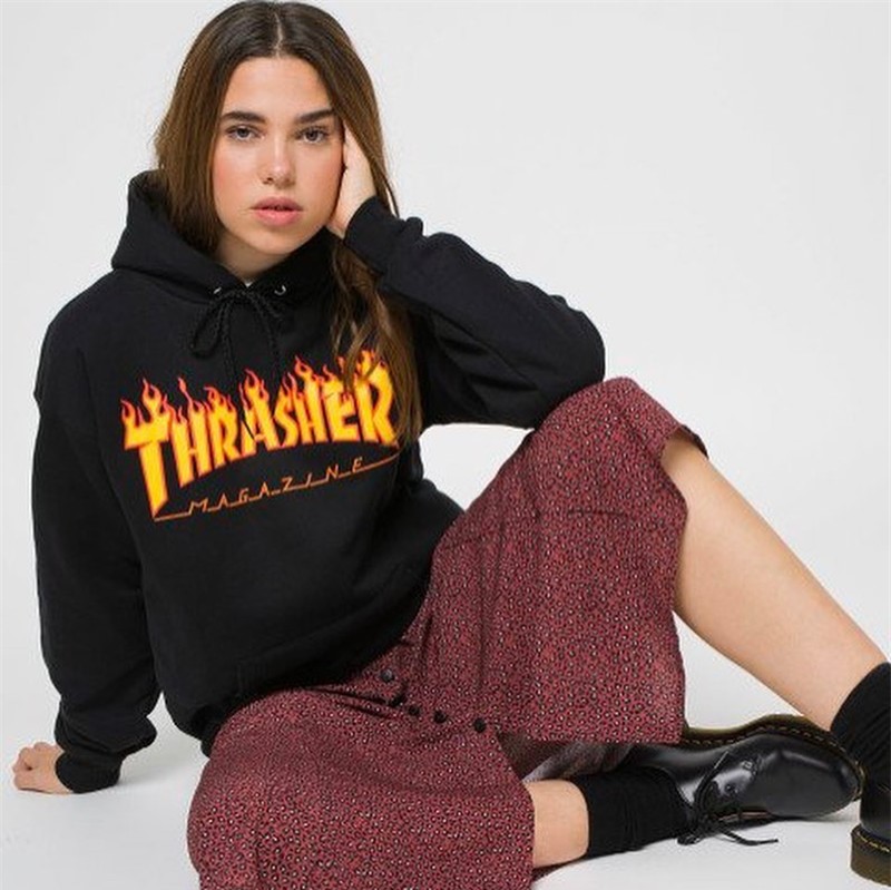 Tide-playing art THRASHER Flame Lianhood Head Wang Yibo the same flame lovers men and women weaters hooded sweatshirts