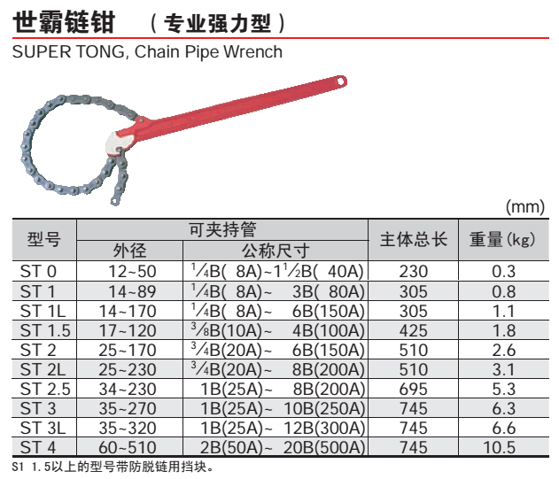 ST4 Japan Shibar SUPER) Super chain pliers pipe wrench ST-4 chain wrench oil chain pliers wrench