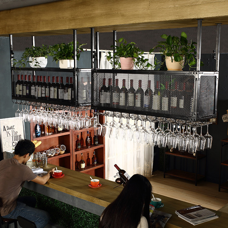 Wine glass rack upside down creative goblet rack Hanging wine glass hanger bar Wine rack Double-layer hanging cup rack bar
