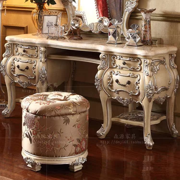 French makeup table pure solid wood carving furniture marble makeup table makeup stool luxury furniture special makeup mirror