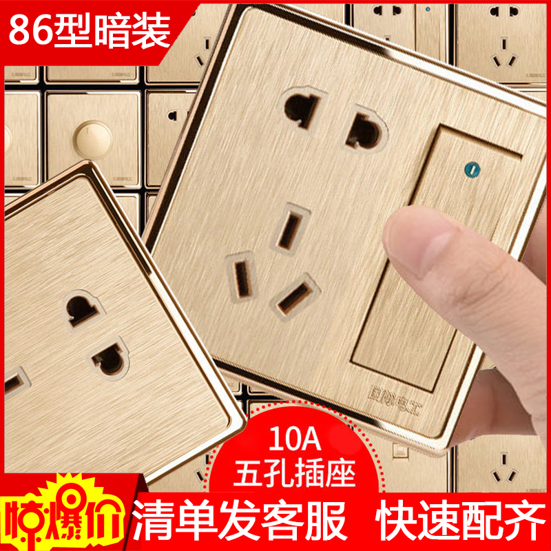 Electrician 86 Type of wall Dark fit switch socket weak electricity One phone film Rose Phnom Penh Large plate wire drawing panel