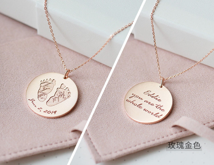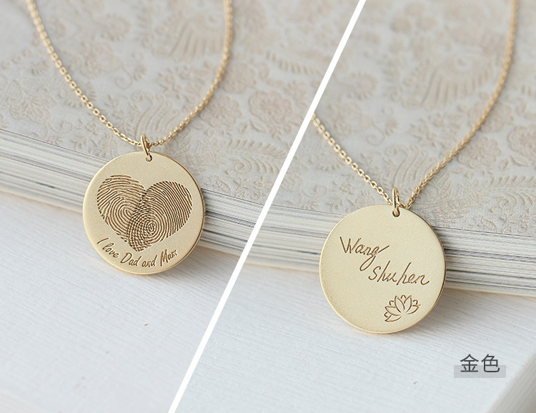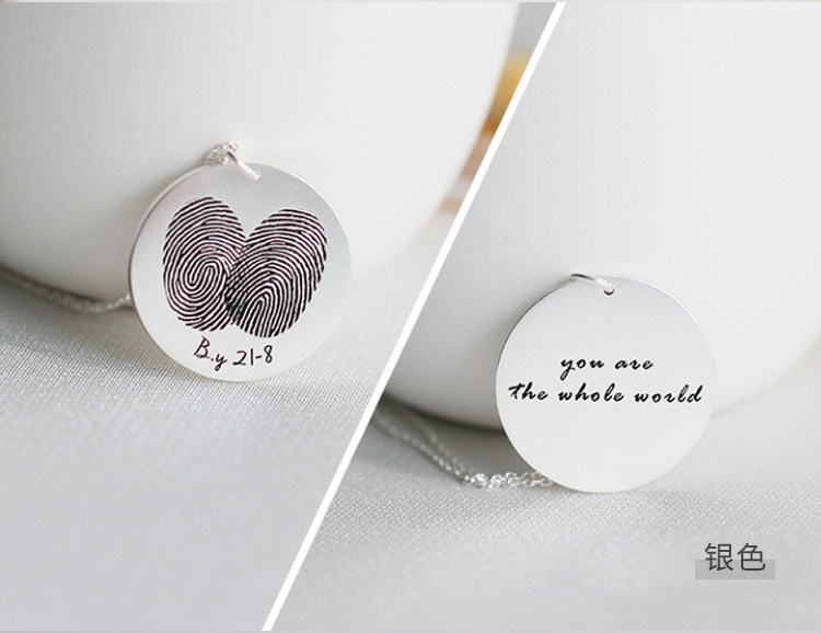 American Designer Grace Private Custom Memorial Fingerprint Palm Print Letter 925 Pure Silver Gilded Couple Necklace