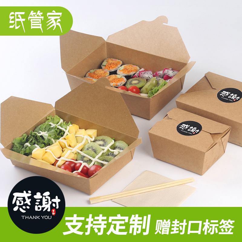Kraft paper delivery box Disposable fast food box Fried chicken packing box Light salad lunch box 100 pcs