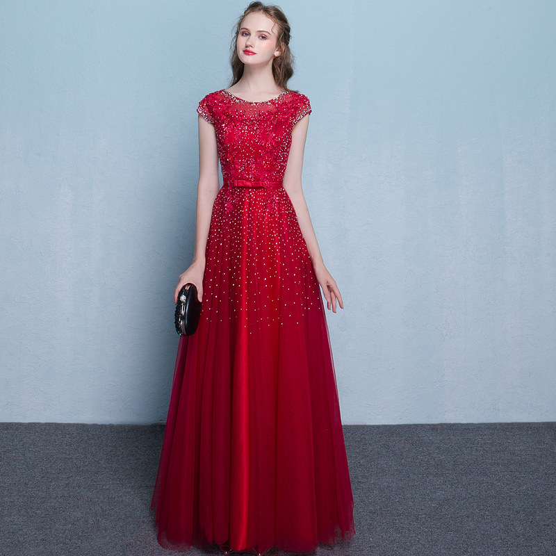 Bride wedding toast dress wine red engagement dress banquet evening dress skirt female high-end temperament host