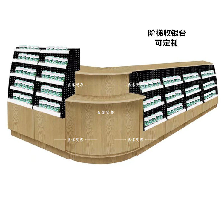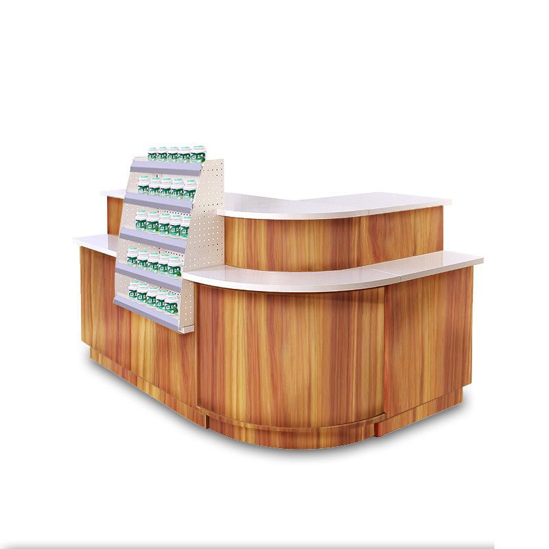 Supermarket cash checkout counter convenience store pharmacy maternal and baby counter corner of simple combination wood steel wood marble