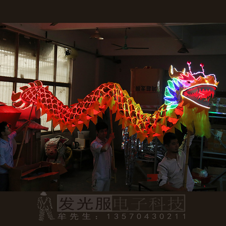 LED Luminous Dragon Dance Lion Dance Lion New Year Festival Celebration Custom Performance Waterproof Bronzing Gold Cloth Folk Dance Dragon Night Light Dragon