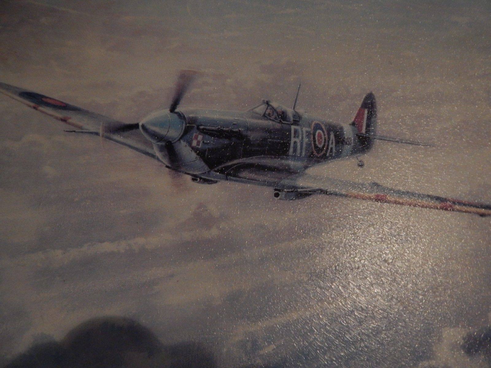British original "Spitfire" fighter jet oil painting with author signature with frame