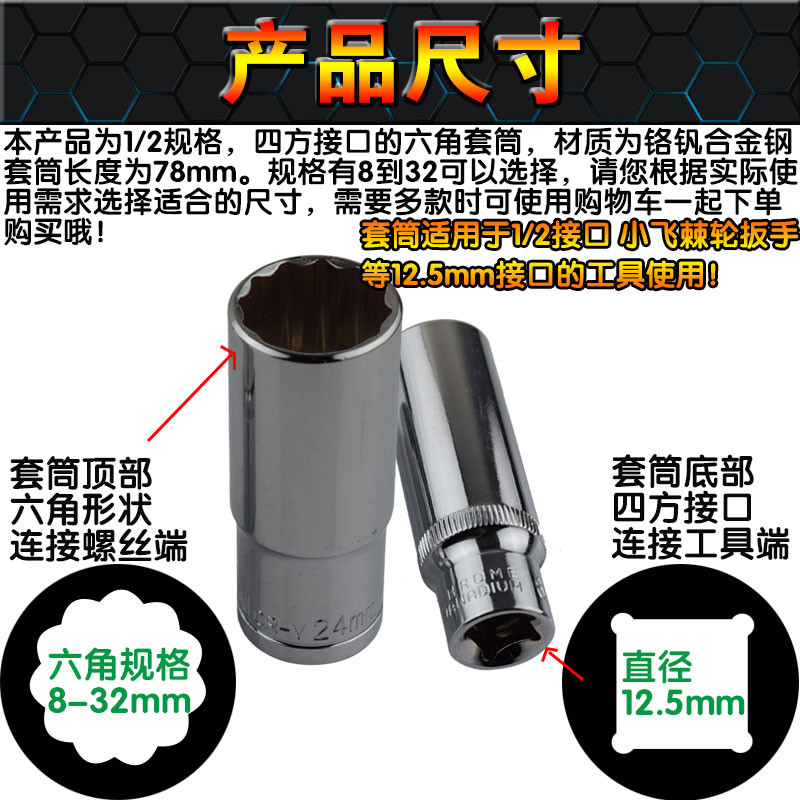 Shield front 1 2 lengthened plum sleeve engine twelve angular lengthened sleeve outer hexagonal plum sleeve 8-32mm