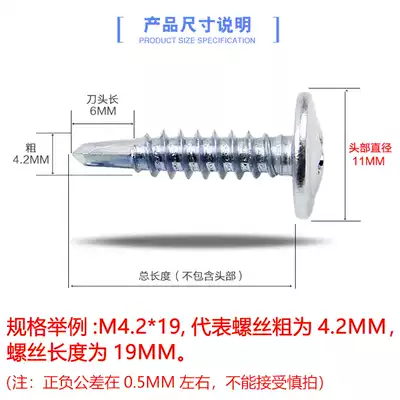 Galvanized cross large flat head drill tail screw dovetail wire self-drilling self-tapping screw Color steel tile iron M4 2M4 8