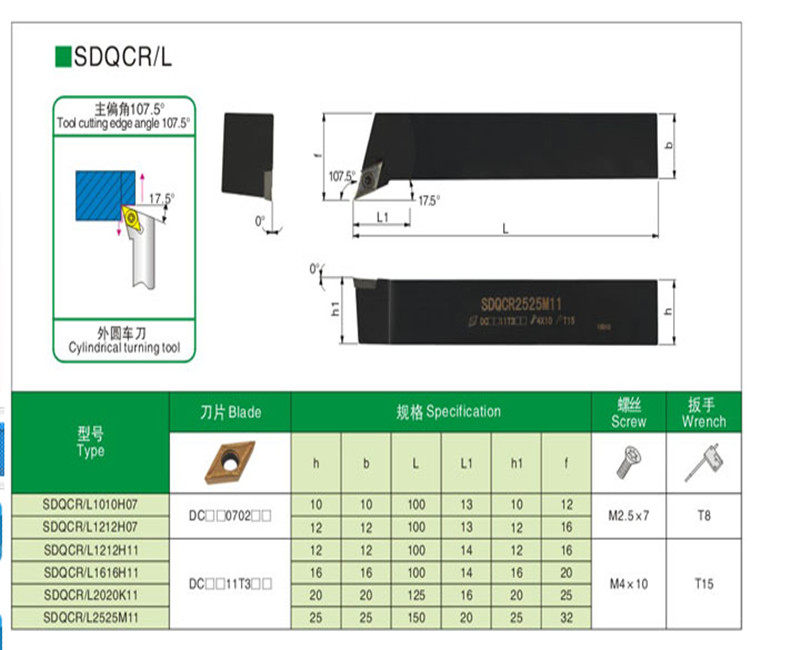 Three-Korean outer round car cutter numerical control knife lever screw type 107 5 degrees flip-hand knife lever SDQCL12 16 20 25