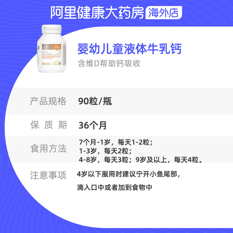 Australia bio island imported infant baby baby liquid bovine milk calcium vitamin D capsule calcium supplement tablets 90 capsules