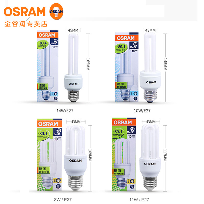Osram 3U straight tube energy-saving lamp E27 big screw 8W11W16W23W household lighting environmental protection energy-saving lamp