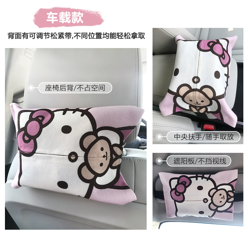Hello kittyHello cotton and linen cloth car toilet paper box tissue bag paper towel cover removable toilet paper bag napkin box