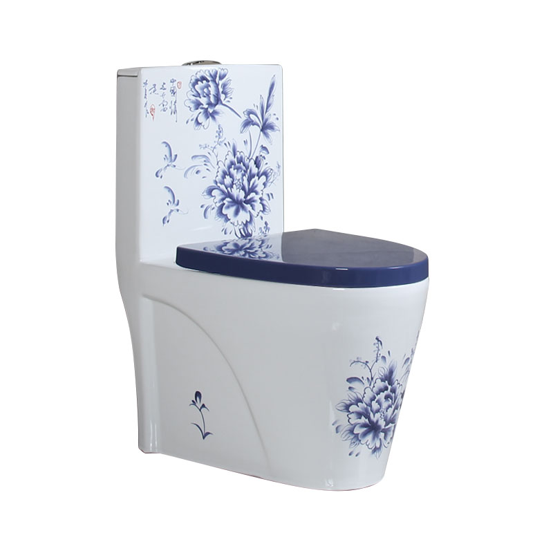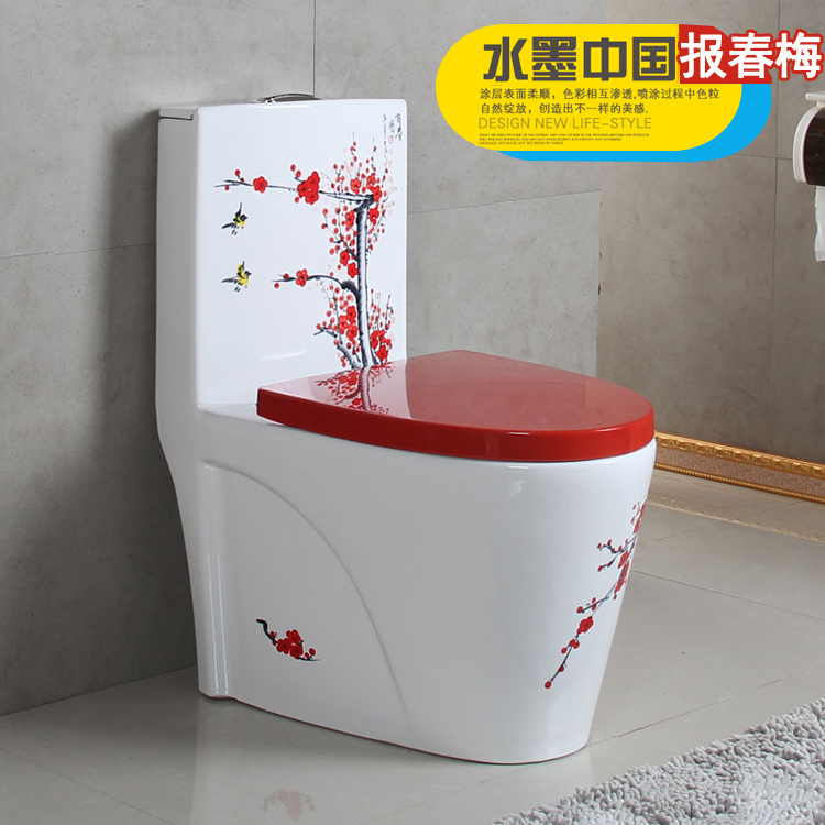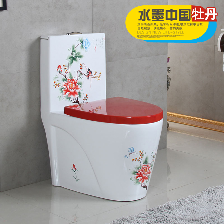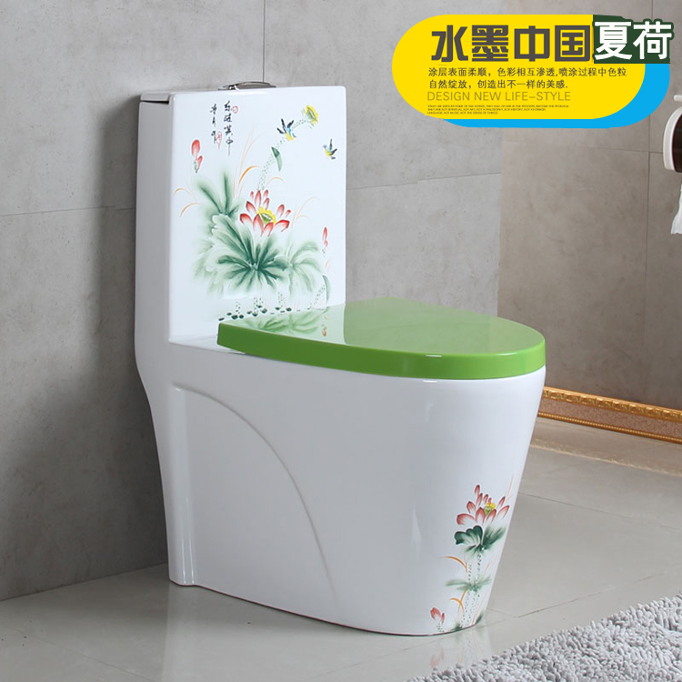 New Chinese Color Toilet Makeup Room Siphoning Type Toilet Home Ceramic Color Golden Green Flower Porcelain Individuality Creativity