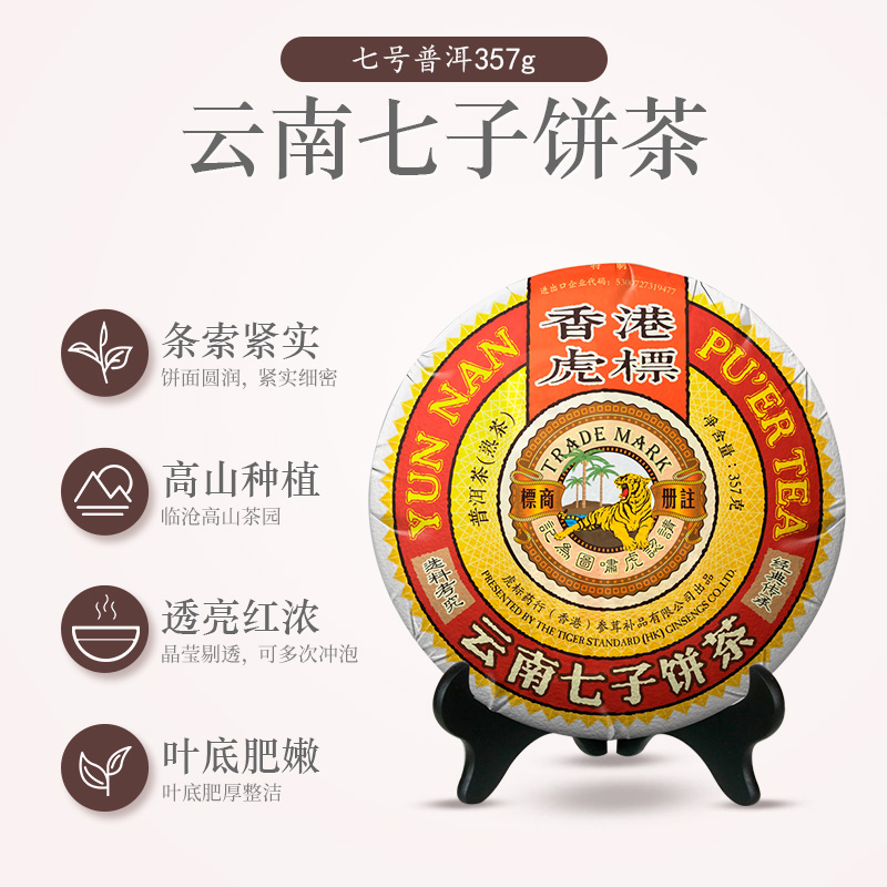 2019 Tiger Mark 7th Port Pin Pu-erh Tea Cooked Tea 357g Port Tea Yunnan Seven Subpie Tea Large Leaf Type Sunburn