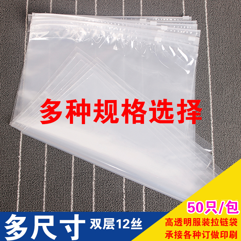 Clothing bag zipper bag winter clothes and other packaging plastic transparent self-sealing bag 50 large 35 * 45 wholesale