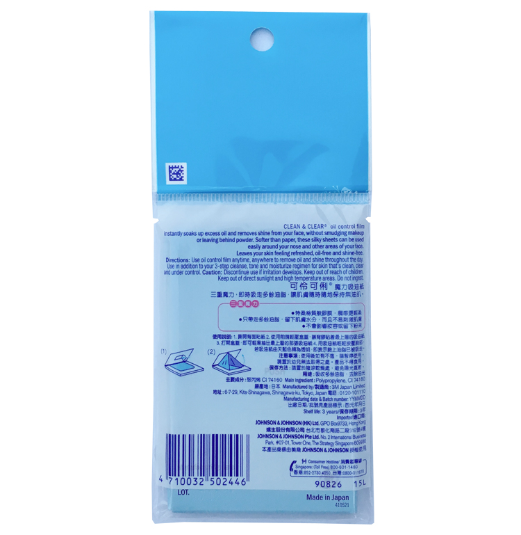 Hong Kong Clean Clear oil-absorbing paper magic blue film oil-absorbing paper 60 pieces of blue film