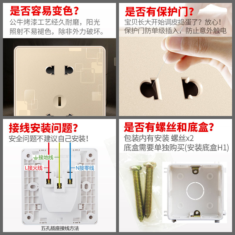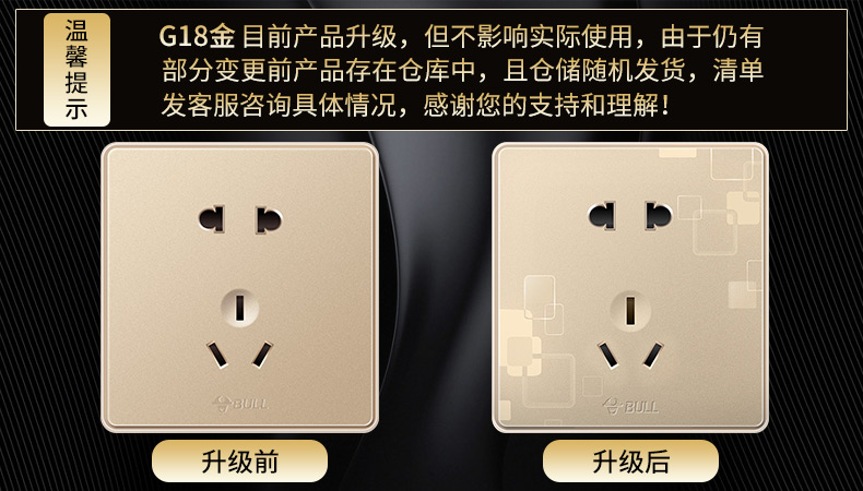 Bull G18 Champagne Gold Five Holes Power Switch Socket Package