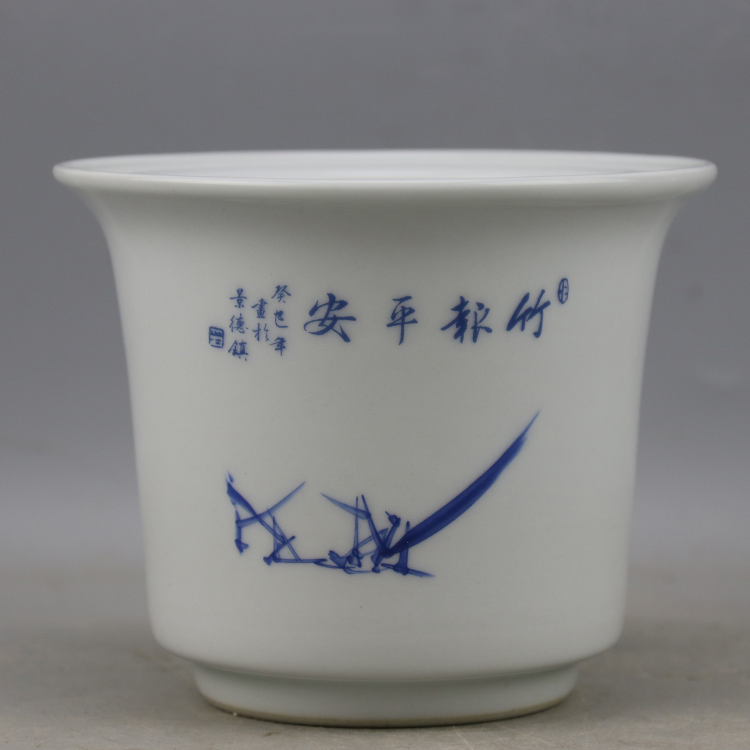 Retro Style Green Flowers Bamboo Newspaper Safe Round Flower Pots of Calamus Multimeat Orchid Green Planting Ceramic Basin Antique ancient Play