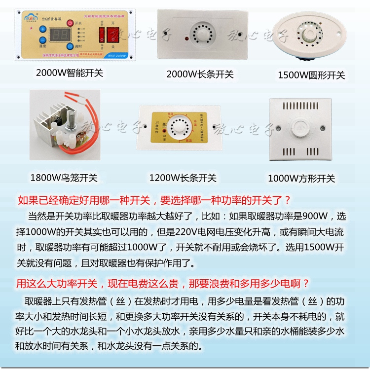 1000W oval switch 1000W square switch (no bottom case) 1000W square switch (with bottom case) 1500W oval switch 1500W square switch (no bottom case)