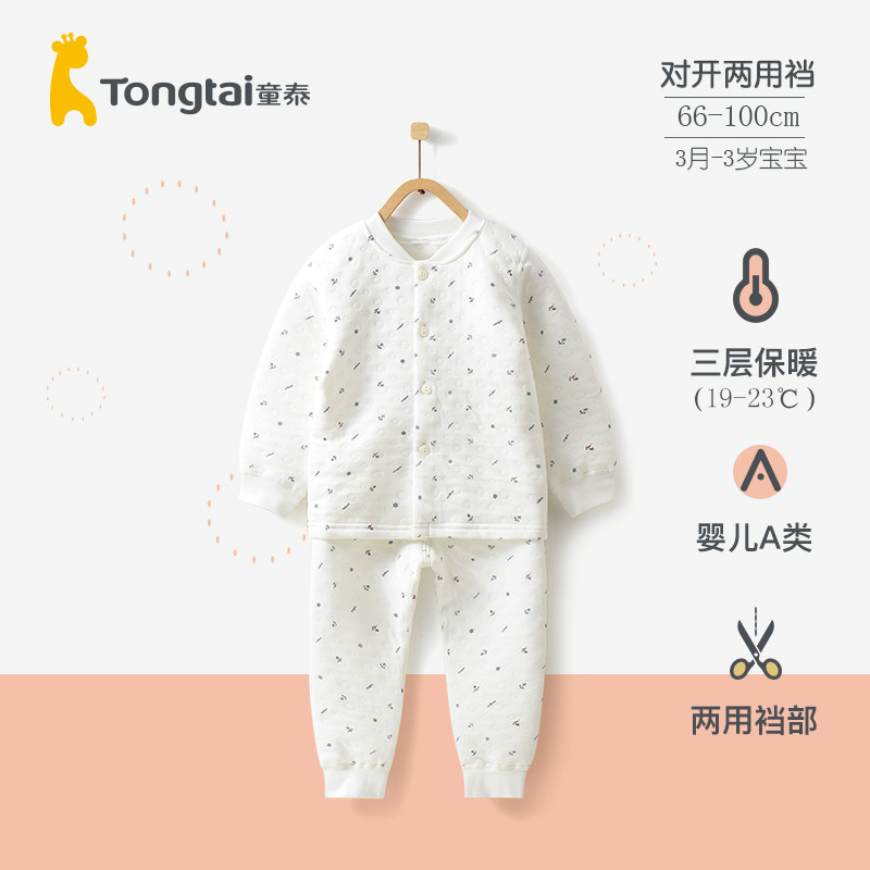 Child Tai baby autumn winter clothes March -3 male and female baby pure cotton gush two style heating clothes pants