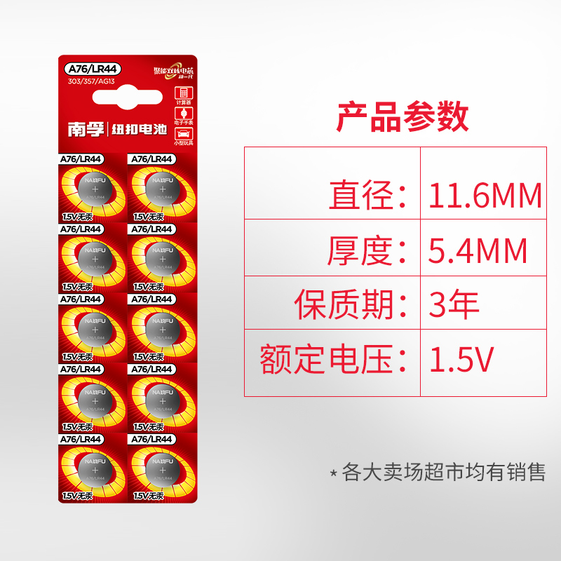 South Fu Buttons battery LR44 A76 AG13 AG13 buckle type 1 5V Swim Javi scale battery One card 10 grain