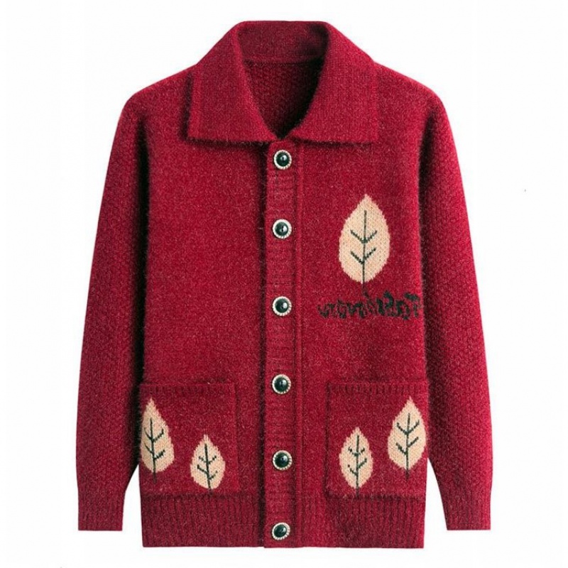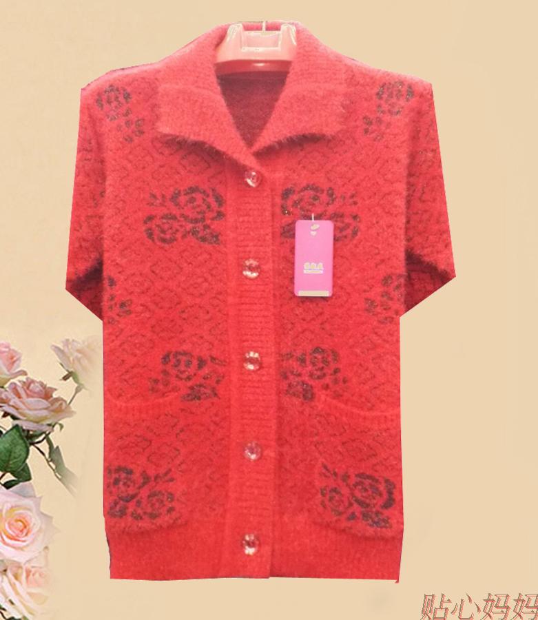 Middle-aged and elderly mothers and grandmothers wear knitted cardigan women's color bottoming sweater sweater short coat buckle sweater thickening