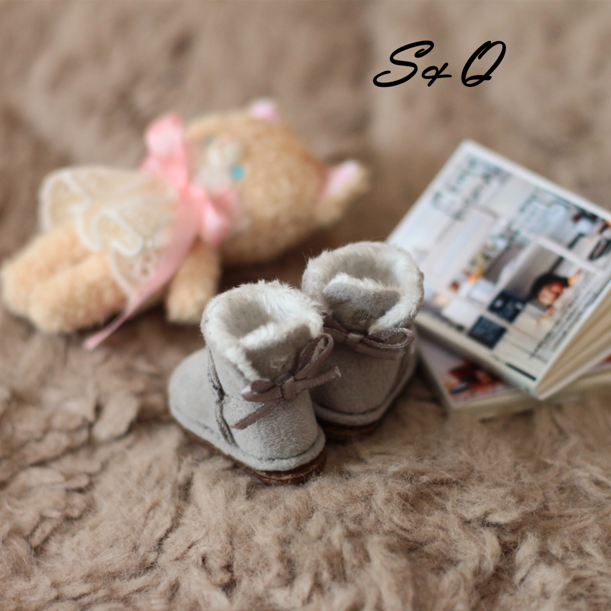 Bow snow boots BJD shoes OB11 bear girl MDD 1 6 1 4 small cloth four points six baby shoes