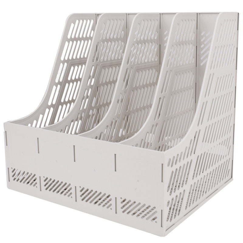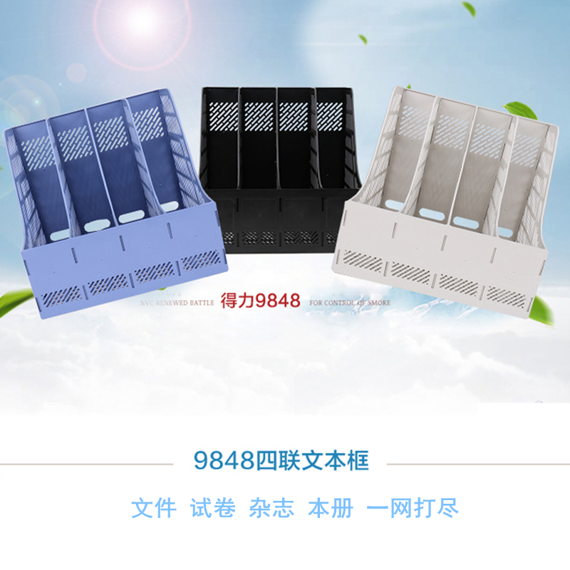 Deli 9848 four-linked document frame Vertical four-grid book stand basket Information book folder storage and finishing plastic rack