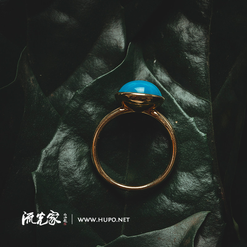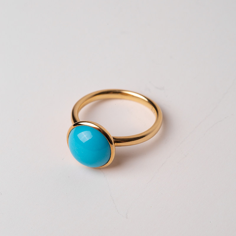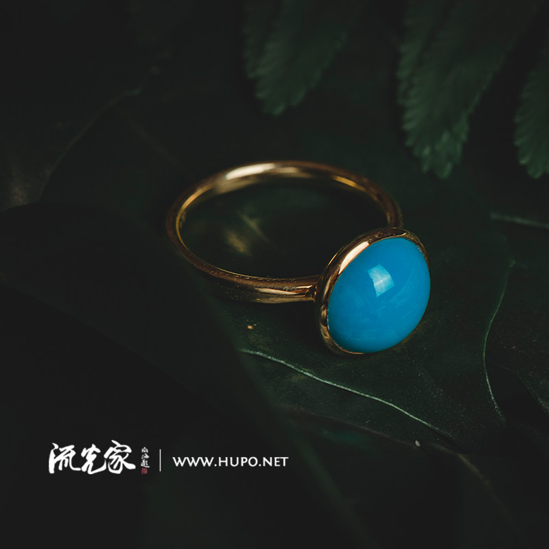 Flow home Original design high - porcelain blue natural sleeping beauty Turquoise ring 18k gold inlaid popular