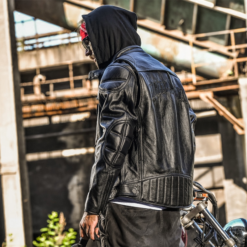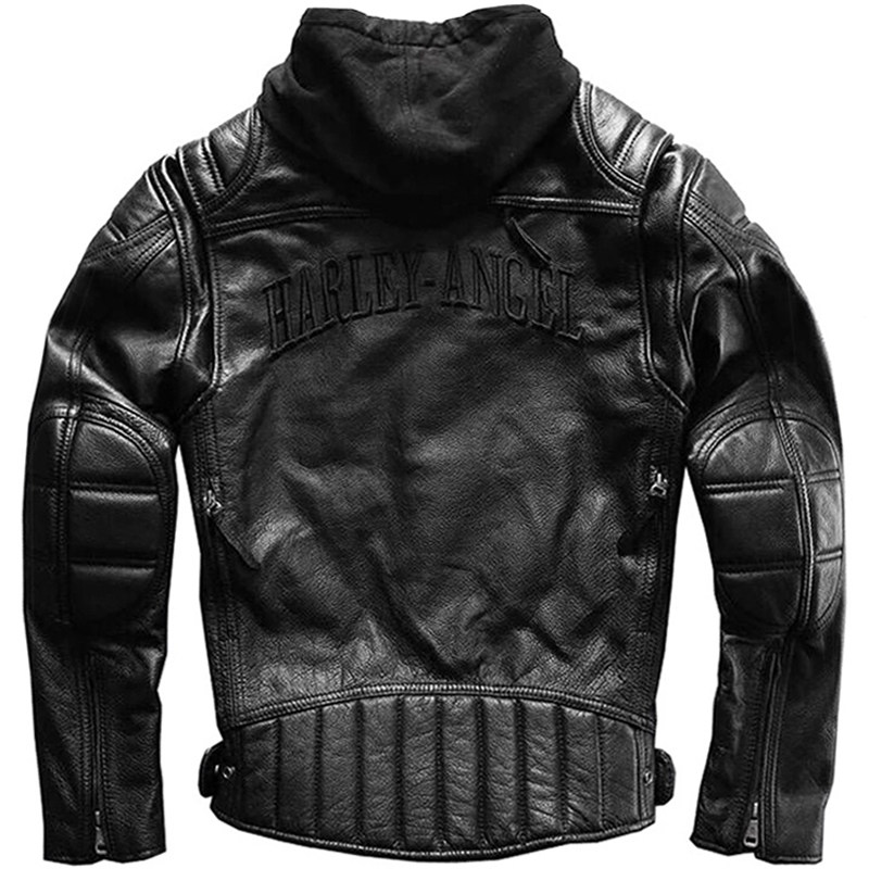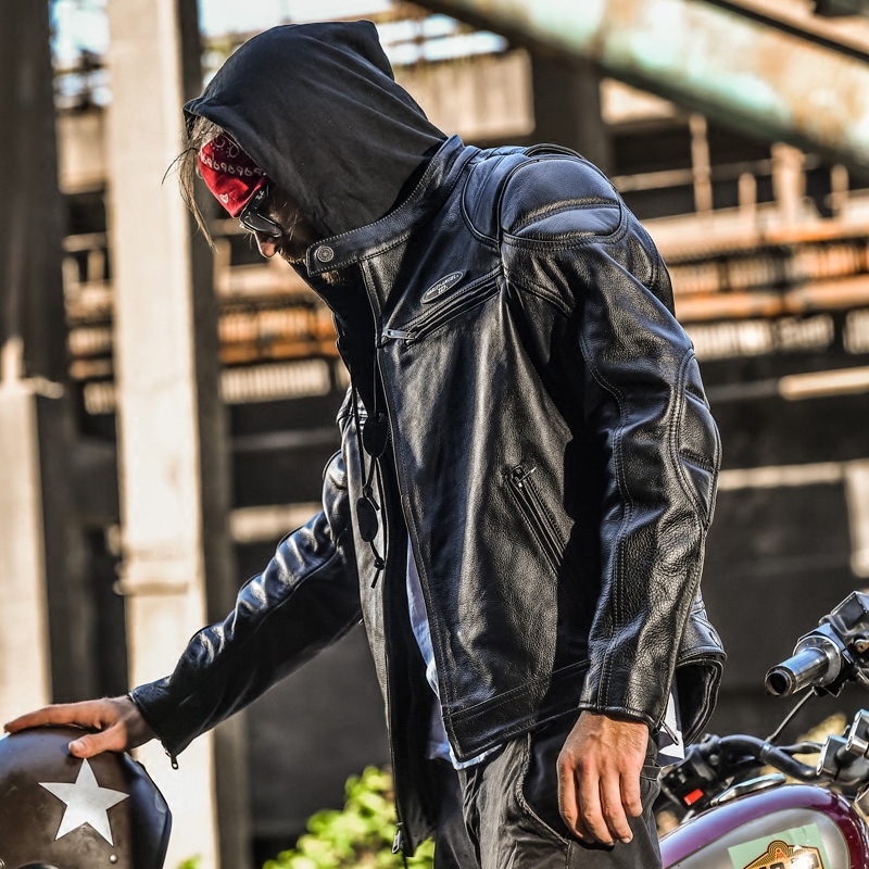 Men's leather leather Harley motorcycle riding suit Hooded cowhide leather jacket Youth motorcycle jacket tide brand autumn
