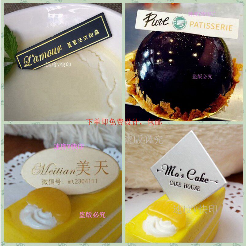 Custom rectangular black and white cake card plug logo custom gilded mousse cup dessert French design