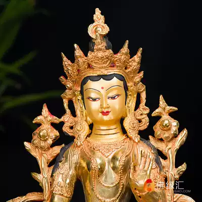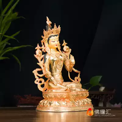 Tibetan Buddhism Tantra for Buddha ornaments 10 inches for Buddha Domestic pure copper full gilt double-layer rosette Green mother Buddha statue
