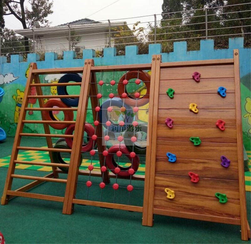 Outdoor large wooden slide climbing drilling combination toys kindergarten wooden outdoor drilling toys