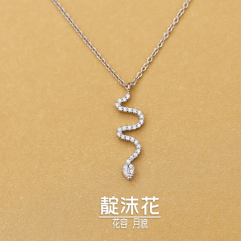 S925 Pure Silver Small Snake Necklace Zircon Pendant Lock Bone Chain Fashion Temperament Personality Neck Necklace Delicate Sweet Ornament Woman