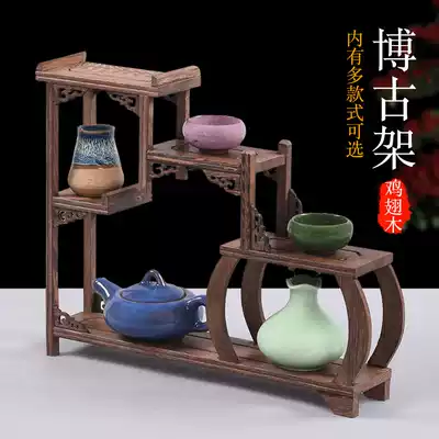Chicken wing wood Bogu rack Solid wood Chinese style small multi-treasure pavilion display rack Modern simple tea set sand pot shelf rack ornaments